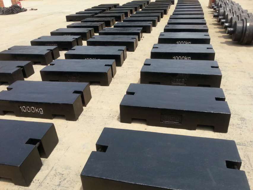 純鑄鐵材質1噸砝碼技術資料 主要產品 有1kg-5噸標準砝碼:平板型砝碼,圓柱型砝碼.滾動式砝碼.組合式砝碼.鎖式標準砝碼等系列以及各種異型標準砝碼。 【產品名稱】:標準砝碼 【產品等級】:M1/M2/M3等級 【產品材質】:鑄鐵 【產品形狀】:鎖型/方形/圓滾型 【產品顏色】:黑色 【產品規格】:1kg/2kg/5kg/10kg/20kg/25kg/50kg/100kg/200kg/500kg/1T 【備注】:砝碼的外層鍍了層黑色防護漆,減少外界對砝碼的腐蝕, 防止砝碼生銹 結構:配重砝碼可有一個調整腔,所有調整腔的總體積不應超過砝碼總體積的1/10。腔體應密封、防水、防塵。調整腔可用帶螺紋的塞子或提鈕密封。 材料:配重砝碼應由一塊或多塊材料制造,材料的腐蝕性要等于或優于灰口鐵。在正常使用情況下,材料的硬度和強度應能承受家在的沖擊。 形狀:矩形設計形狀,并要求在配重砝碼兩側有可用于裝卸的溝槽和在砝碼底部用叉車搬運的搬運溝槽。砝碼的邊和角應修圓,表面不應有銳邊或銳角和明顯的砂眼,以防止磨損和積灰。按我方圖紙尺寸。 表面情況:為了提高砝碼的腐蝕性和硬度,對于砝碼的表面應有適當的金屬鍍層或涂層。 鑄鐵砝碼的保養技巧:放置砝碼的庫房應潔凈干燥,保證一定溫度、濕度、砝碼碼放時底部應鋪墊木板,上部用布或薄膜覆蓋、定期觀察記錄。鑄鐵砝碼的保養技巧:放置砝碼的庫房應潔凈干燥保證一定溫度、濕度、砝碼碼放時底部應鋪墊木板上部用布或薄膜覆蓋、定期觀察記錄. 上海實潤堅持不合格的原材料不入庫;上一道工序加工不合格產品不流入下一道工序;檢驗不合格的成品不出廠,充分保證產品的質量。 產品各地北京市、天津市、上海市、重慶市。 河北省、山西省、遼寧省、吉林省、黑龍江省、江蘇省、浙江省、安徽省、福建省 、江西省、山東省、河南省、湖北省、湖南省、廣東省、海南省、四川省、貴州省、云南省、陜西省、甘肅省、青海省、中國臺灣省。等地都有特約經銷商,深受各地用戶的好評。